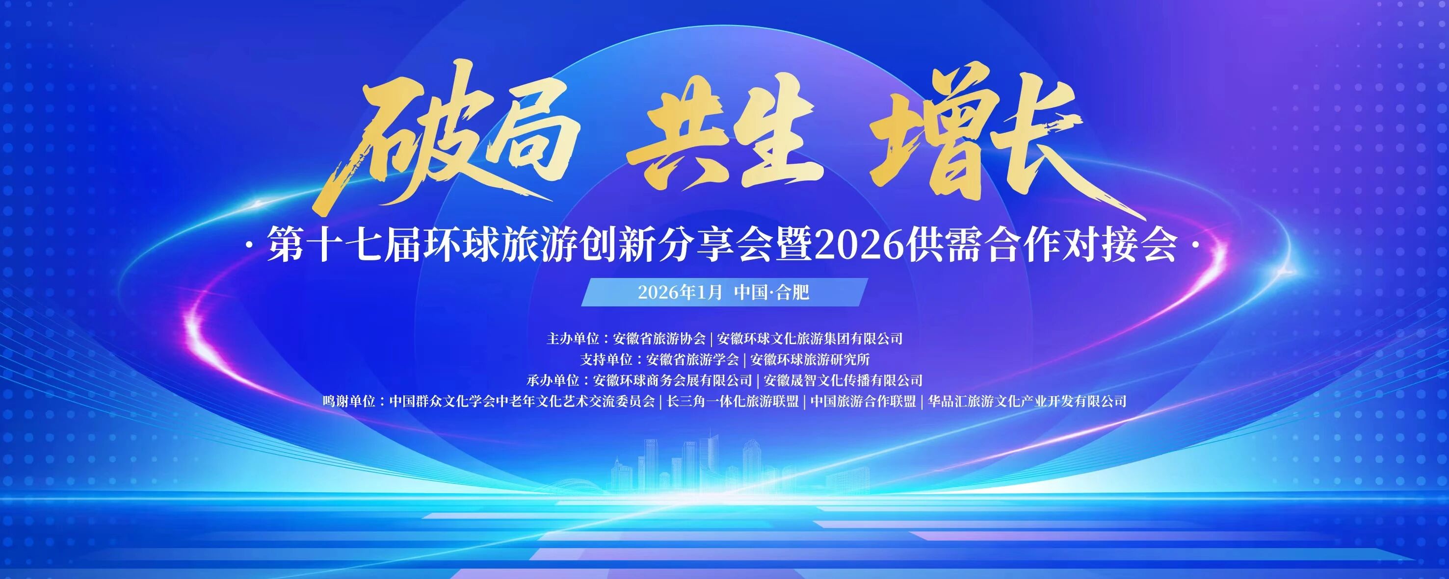 2026年1月25日至27日,由安徽省旅游協會、安徽環球文化旅游集團聯合主辦的第十七屆環球旅游創新分享會暨2026供需合作對接會將在合肥舉辦。